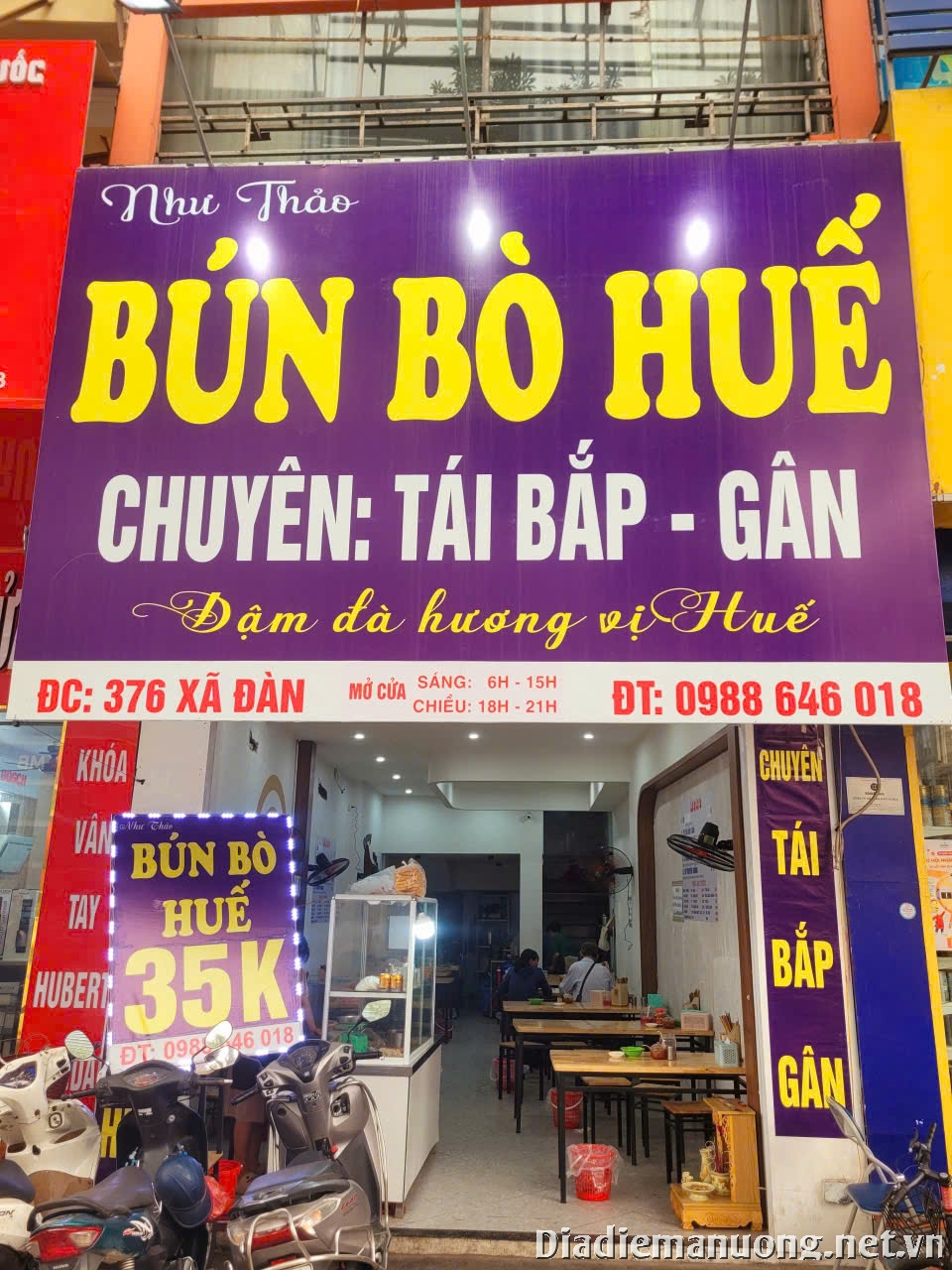Bún bò Huế là món ăn được nhiều người yêu thích. Tại Hà Nội có không ít quán bún bò nhưng để nấu được món bún bò Huế ngon chuẩn vị đòi hỏi người nấu phải có bí quyết và nấu theo đúng chuẩn của người Huế. Xin giới thiệu tới thực khách quán Như Thảo-BÚN BÒ HUẾ chuyên tái bắp, gân tại 376 Xã Đàn, Đống Đa, Hà Nội - đây được coi là địa chỉ thân thuộc của nhiều thực khách sành ăn trong thời gian gần đây.